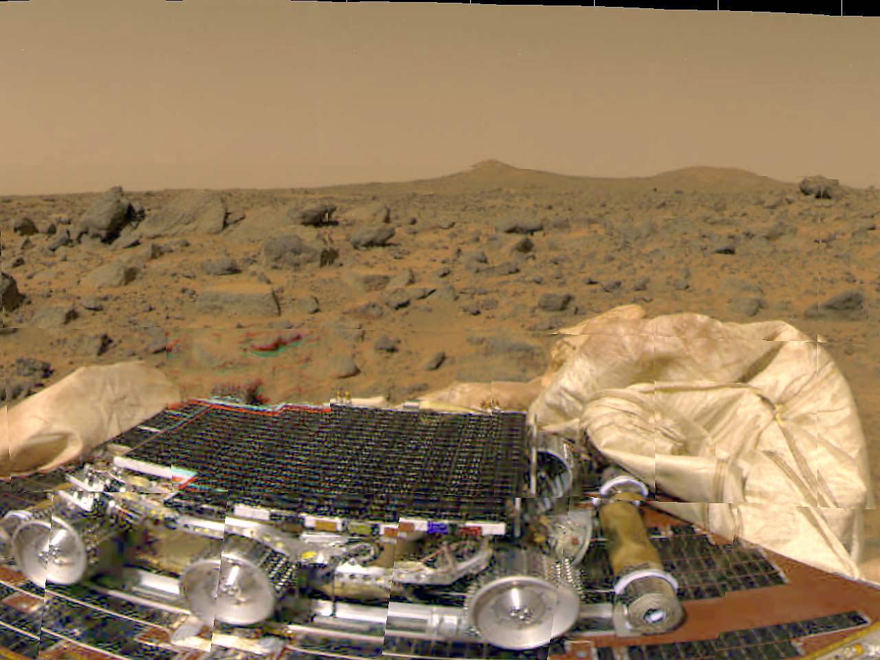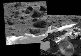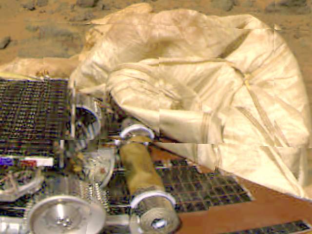 Actual NASA photos of the Pathfinder's landing on Mars. Click on a thumbnail for a larger view. Note: some of the enlarged pictures are quite big, so be patient.